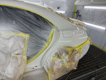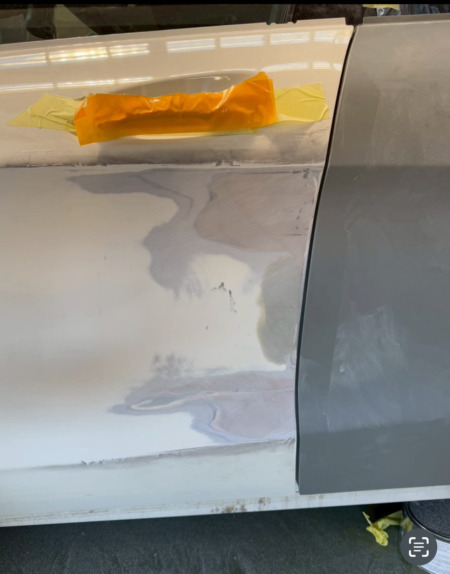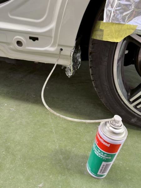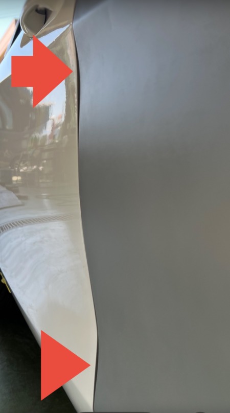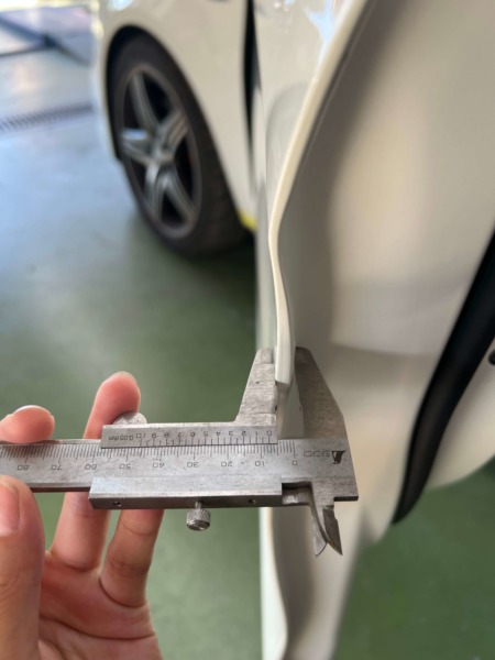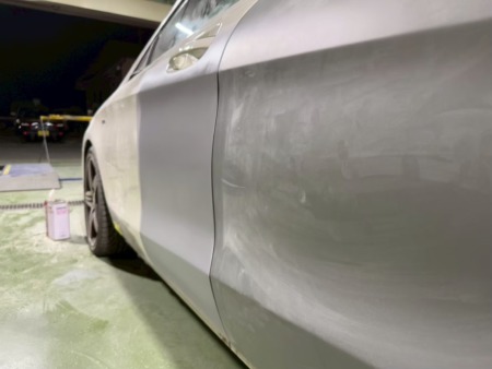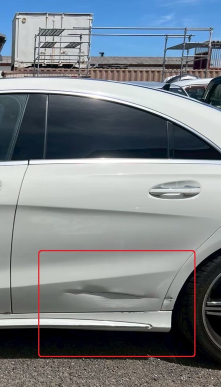 左リアドア、左リアフェンダーアーチ部、ロッカーモールディングが損傷していました。