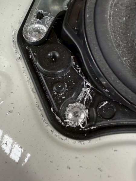▼このベンツ、トリムは市販のリベットでは間に合わず、専用のアルミリベットを使い11箇所固定いたします。
