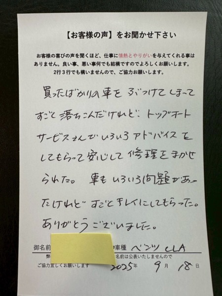 ※お客様のご感想の記事はこちらからご覧いただけます⇒メルセデスベンツ・CLA