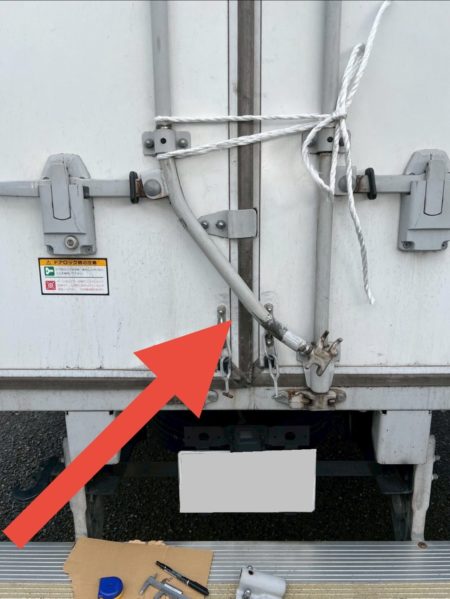 うっかりトラックのリアドアのロックをひっかけてしまい損傷してしまったそうです。