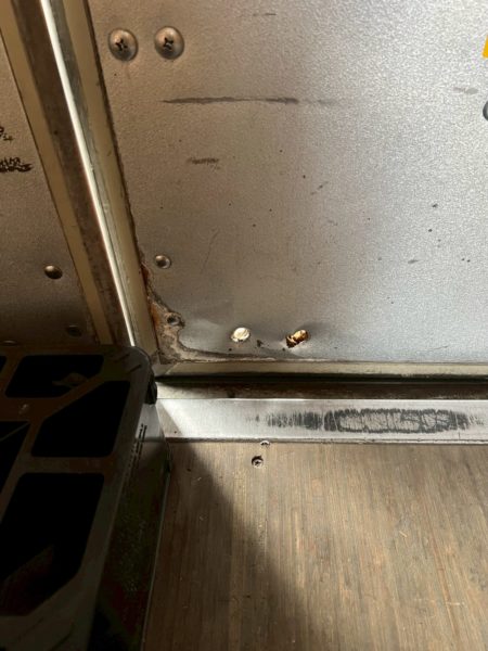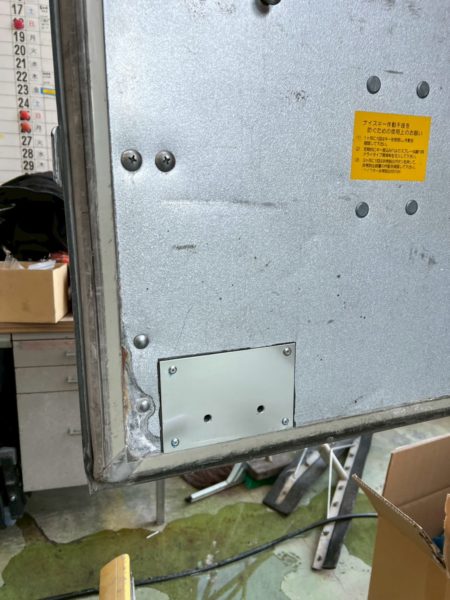 ▼今回は、アルミ板でドアを両側からはさみ込み、強度を保ち元位置にボルト穴を作成しました。