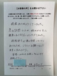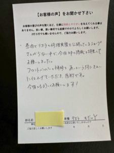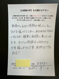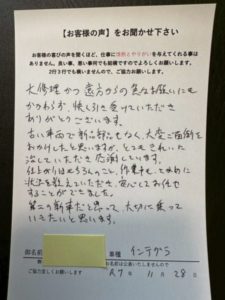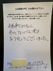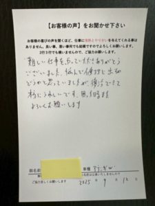 「完璧な仕上がり」「まごころと誠意のあるお店」「料金を抑えたい希望にも寄り添ってくれた」 などの感想をいただいてます